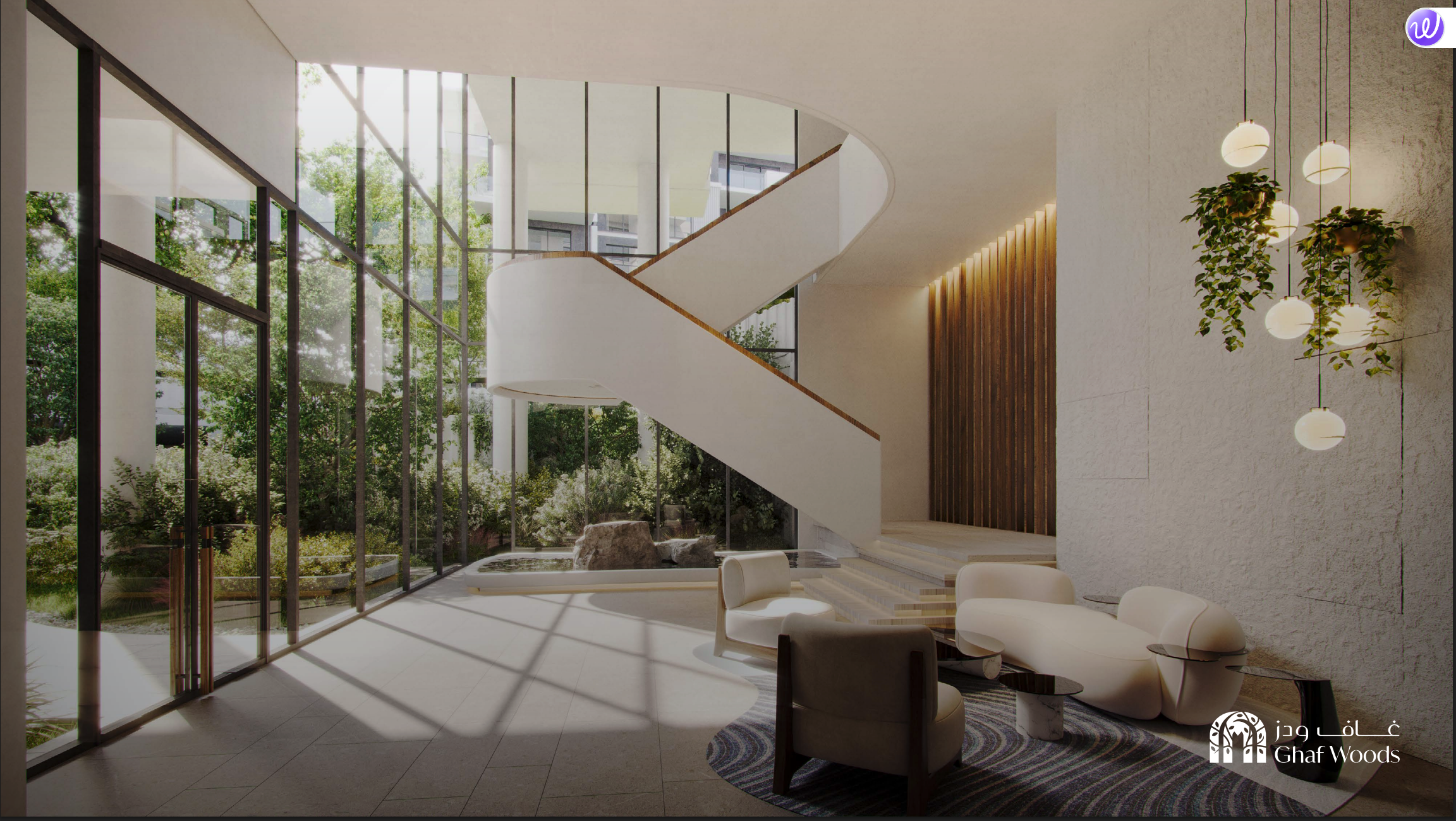 Distrikt is uniquely set amid a natural forest of Ghaf trees, blending contemporary living with serene, verdant surroundings.